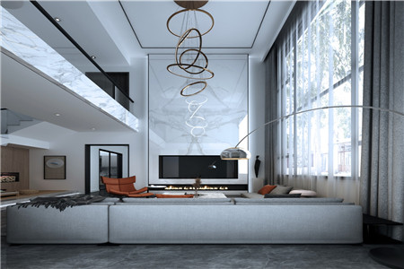 客厅是我们家里的主要活动区域,所以选择灯时尽量的可以选择面积大一些的吊灯或者照明强度大的灯来照明。这样才能凸显出家里的整体装修风格,也会有很好的视觉感受。客厅不仅仅只有一个灯,每个小角落都会有暗灯的,可以增添客厅整体的层次感。所以我们在选择暗灯时要选择小一些的灯来进行装饰。而且亮度要暗一些,不必太晃眼。