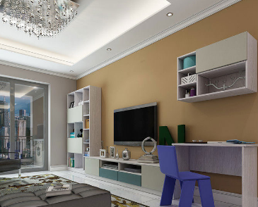最简单的电视柜就是一字型的,电视挂着或者放在电视柜上面,电视柜上最多摆放些装饰物,利用率非常的低,却要占用一面墙的大小。对于小户型来说,实在有点不实用。不是说小户型业主就没有工作、学习的需求,可是小户型想单独有个书房真的太难了,那就要发挥大家的创造力了,比如在电视柜旁边加个书桌。