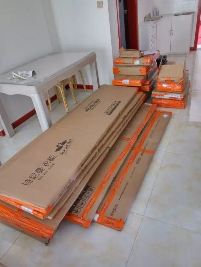 定制衣柜的每一块板都是拆分后用纸皮精密包装好的,以防刮花或者弄脏。业主可以看到在包装纸箱上有诗尼曼的品牌logo、电话等相关信息,这也是鉴定衣柜是否为品牌正货的方法之一。