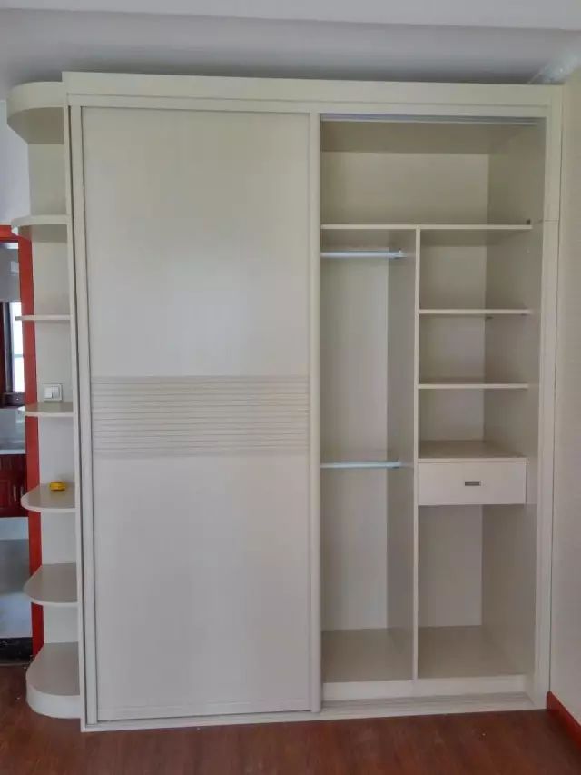 把定制衣柜的板材拿出来,开始安装。这是安装完成后衣柜的样子,颜色淡雅,造型简约,整体非常美观大方。