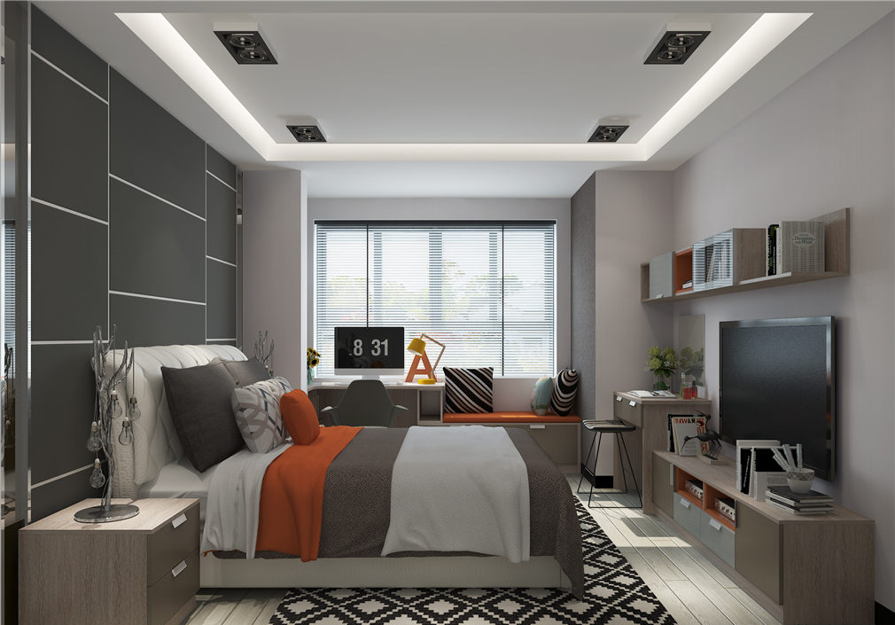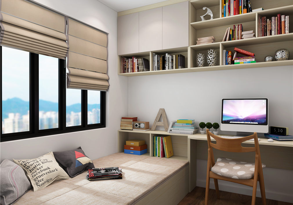 阳光无缝穿透书桌、阅读、休闲区,照亮卧室生的各个细节,办公学习让心情更积极。
