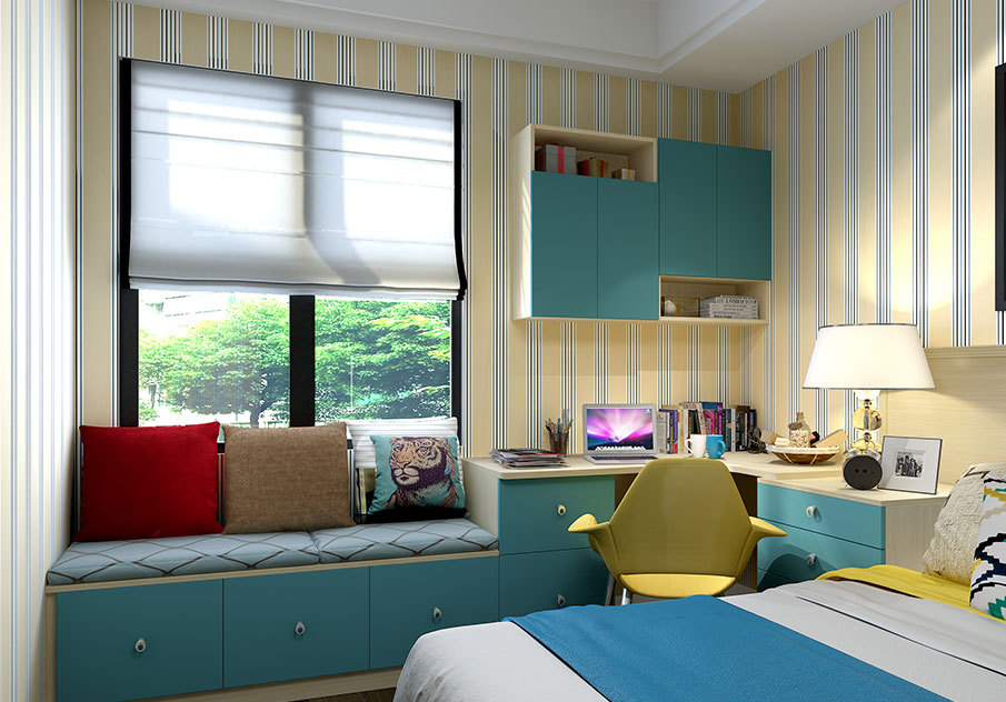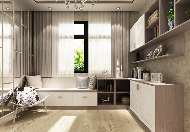 卧室飘窗里,休闲的收纳柜为你装下一屋的杂乱,在你心情郁闷的时候,提供一个拥抱阳光,休闲惬意的好地方。