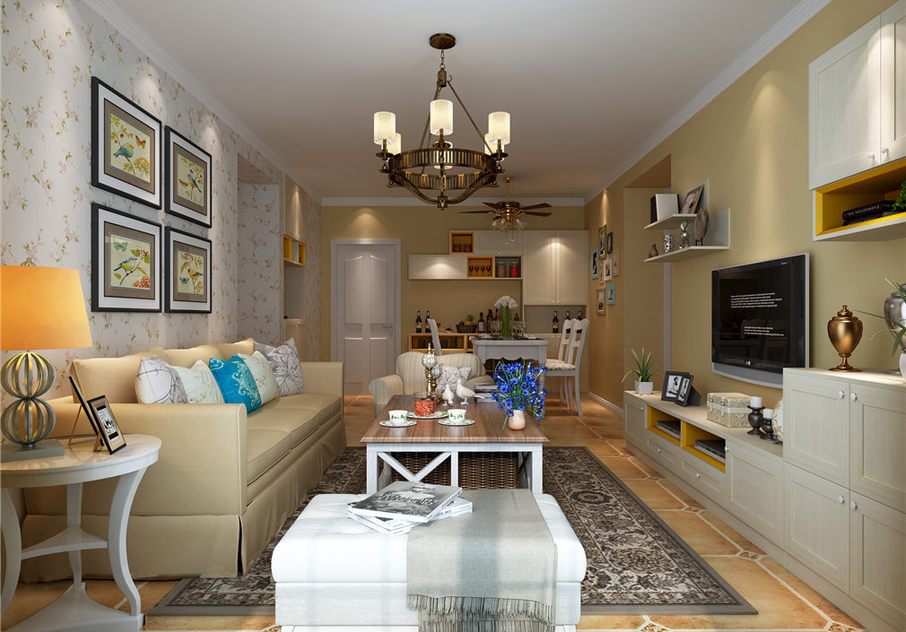 田园风格客餐厅,以绿植,碎花壁纸,布艺沙发装饰,给人一种贴近自然的生活气息。玄关鞋柜内嵌,恰到好处地利用空间。储物柜主色是白枫,置物架用了宫廷黄点缀,素雅中又带亮色,不呆板,不花哨。