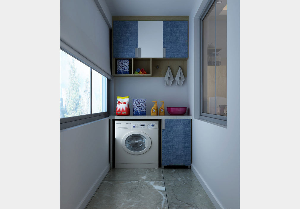 阳台空间利用,首选洗衣机柜。定制洗衣柜可以根据阳台实际面积,充分利用空间。洗衣机柜+吊柜+半开放式储物柜,满足洗衣、收纳、置物的功能,保持阳台空间的整洁度,让家里里里外外都清新怡人。
