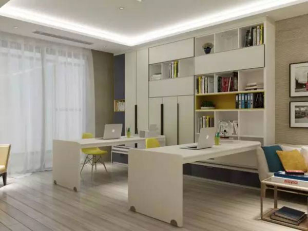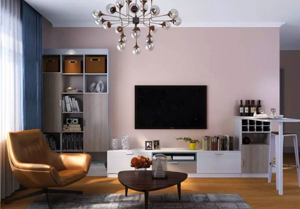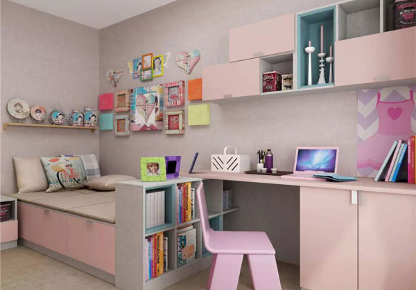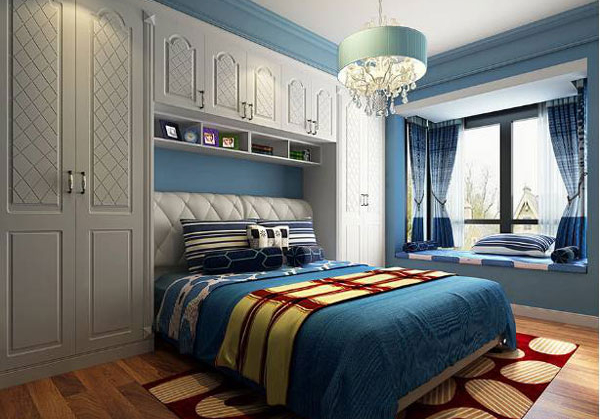 将衣柜嵌入梁下,软装与墙面颜色呼应,