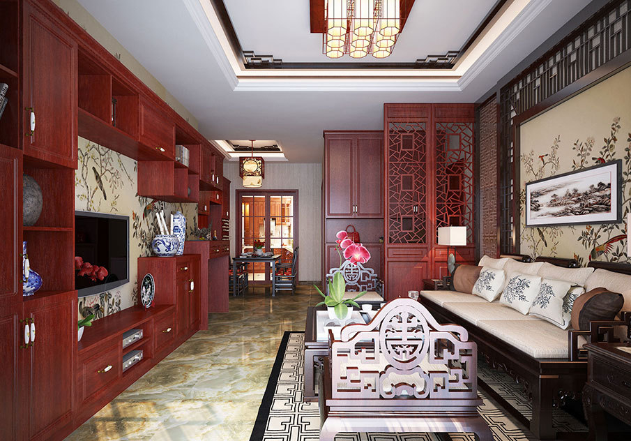 新中式风格客厅通过家具和色调,体现出浓浓的中式古典韵味,符合中老年人对客厅的定位和需求。在这种客餐厅品茶,会客,其实也是一种享受。