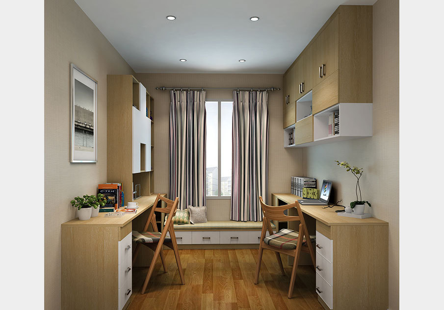 对于书房设计,有人喜欢设计成一个人的小空间,但也有人希望设计成两人用书房,打造成一个能共同工作学习的空间,相互间能互相监督,良好的学习氛围让枯燥的学习都变得有趣极了。诗尼曼有没有双人书房定制?效果怎么样?接下来,一起来欣赏几款家庭两人用书房设计效果图。