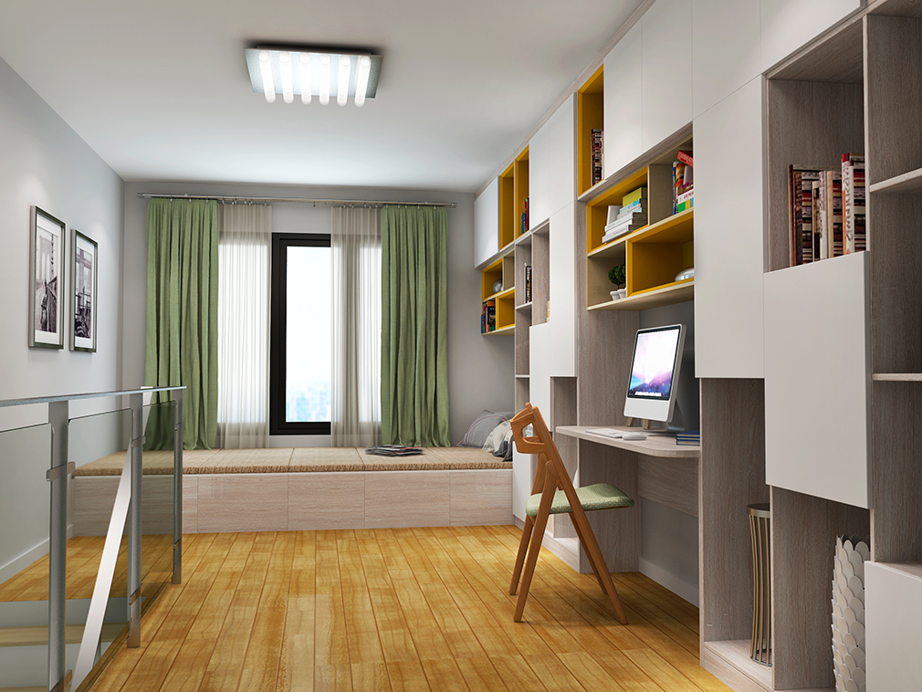 解决方案:在小房间、书房的空间,可以在飘窗位加入榻榻米,改造成一个休息区,闲时午睡小憩,客人来了可以当客房!