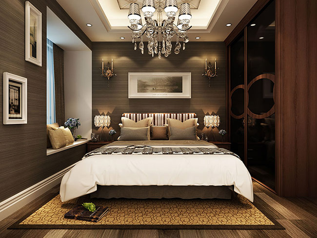 大件家具通常选择较深的颜色,散发古典韵味。为了避免大面积深色调的沉重感,一般会使用浅色调软装或墙面与深色家具形成对比,保证视觉上的协调感。
