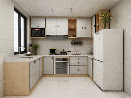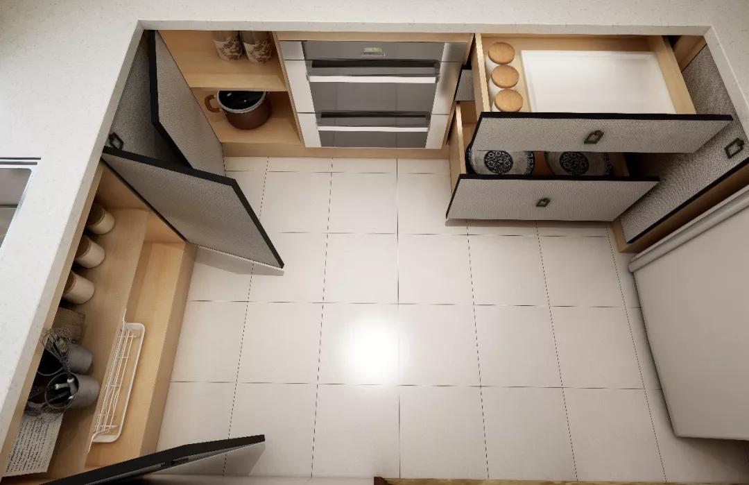 ▲完备的抽屉式收纳系统,厨房锅碗、调料罐等均可有效归类。