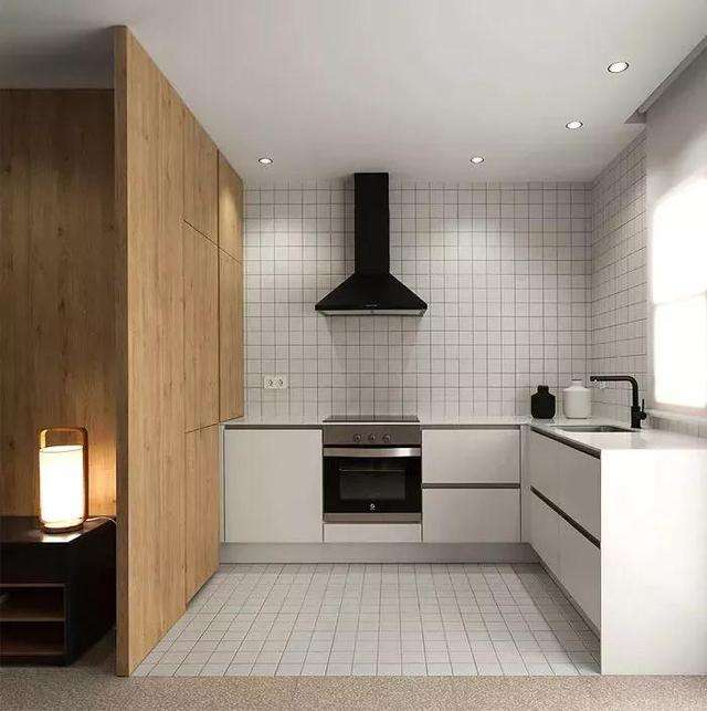 大对数的户型厨房都是比较小的,这样的厨房如果使用大规格的瓷砖就会显得非常拥挤,所以较小的厨房最好也选用较小规格的瓷砖,这样的瓷砖会有一定的视觉延伸作用,也减少了瓷砖的切割次数,降低了浪费,节约了成本。