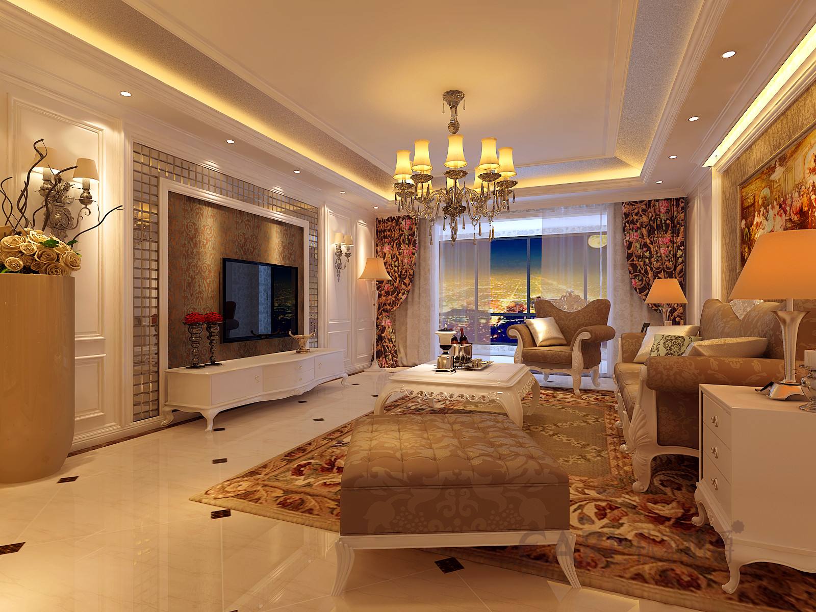客厅在风水来说,是属阳性的。在客厅的灯,适宜用暖色的灯,而且灯的安放位置,适宜在客厅的正中央。另外,要是你的天花板与地板的距离不算远的话,就不适宜用吊灯,免得吊灯形成一把刀、剑,对你的运势造成影响。
