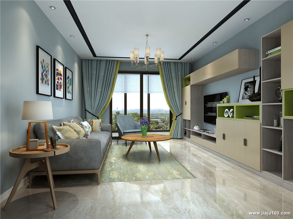 狭长型客餐厅利于用墙面空间布局柜子,可在两厅设计多功能办公阅读区。卧室的鸡肋空间极致利用设计成高格调的衣帽间。整体设计从实用性出发,简单温馨。