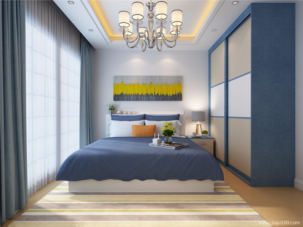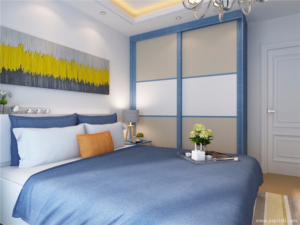 首页> 全屋定制> 15㎡主卧 牛仔蓝色移门衣柜设计