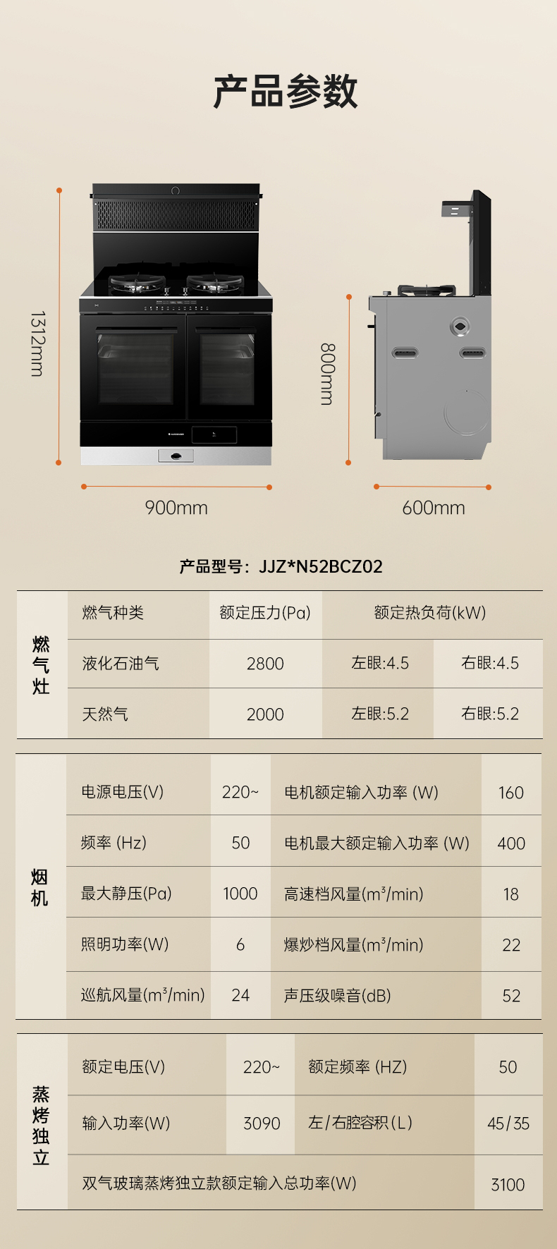 火星人_蒸烤炸款_液化气集成灶(左风道)JJZY-N52BCZ02L