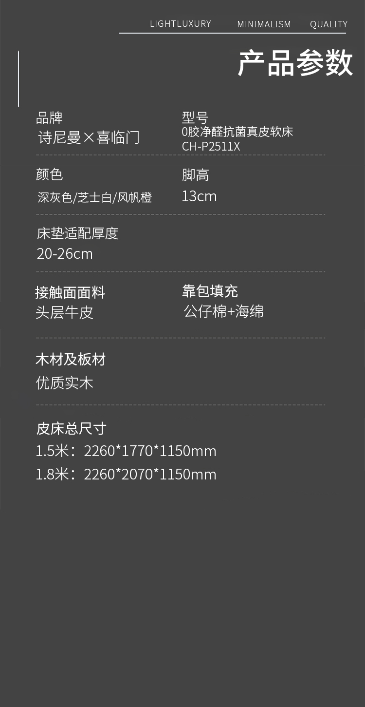 喜临门·星程 净Q抗菌零胶CH-P2511X现代简约真皮软床 1.8M