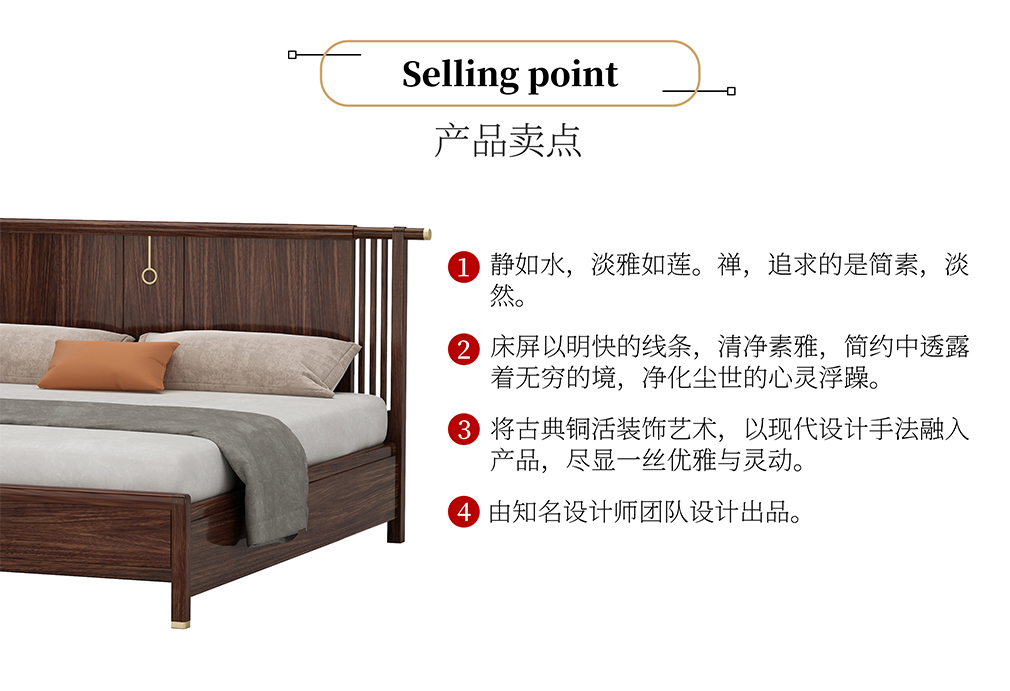 GY新中式GYCH-2511实木床 1.5M