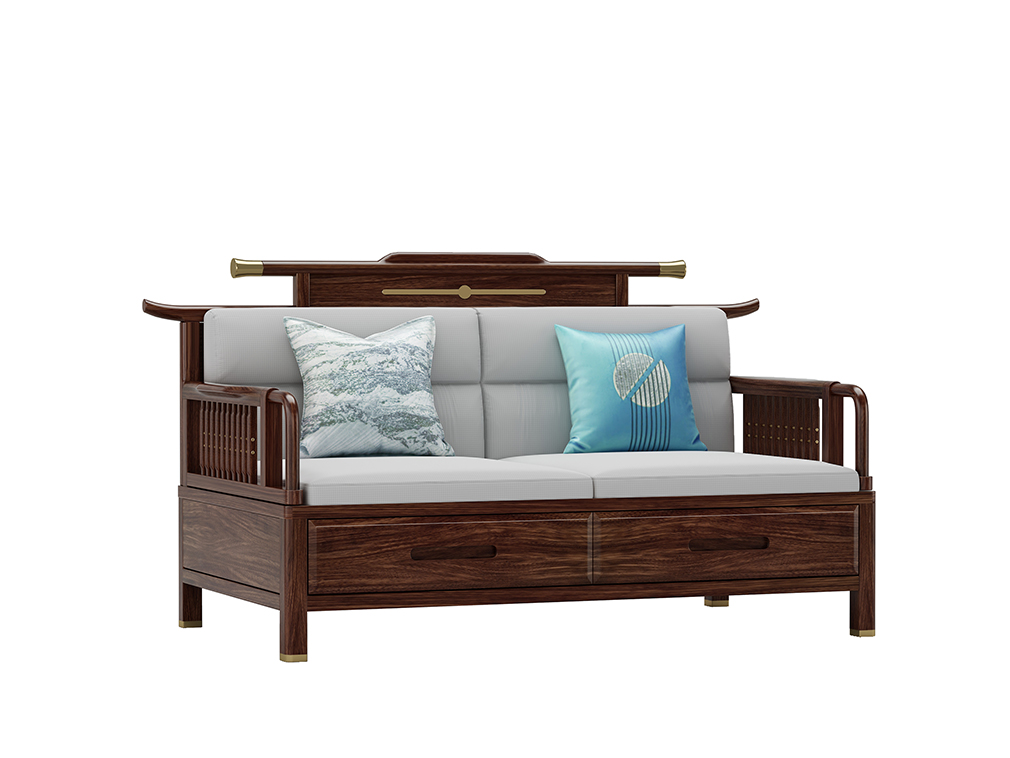 GY新中式GYSF-B2512J实木双人位双扶手沙发