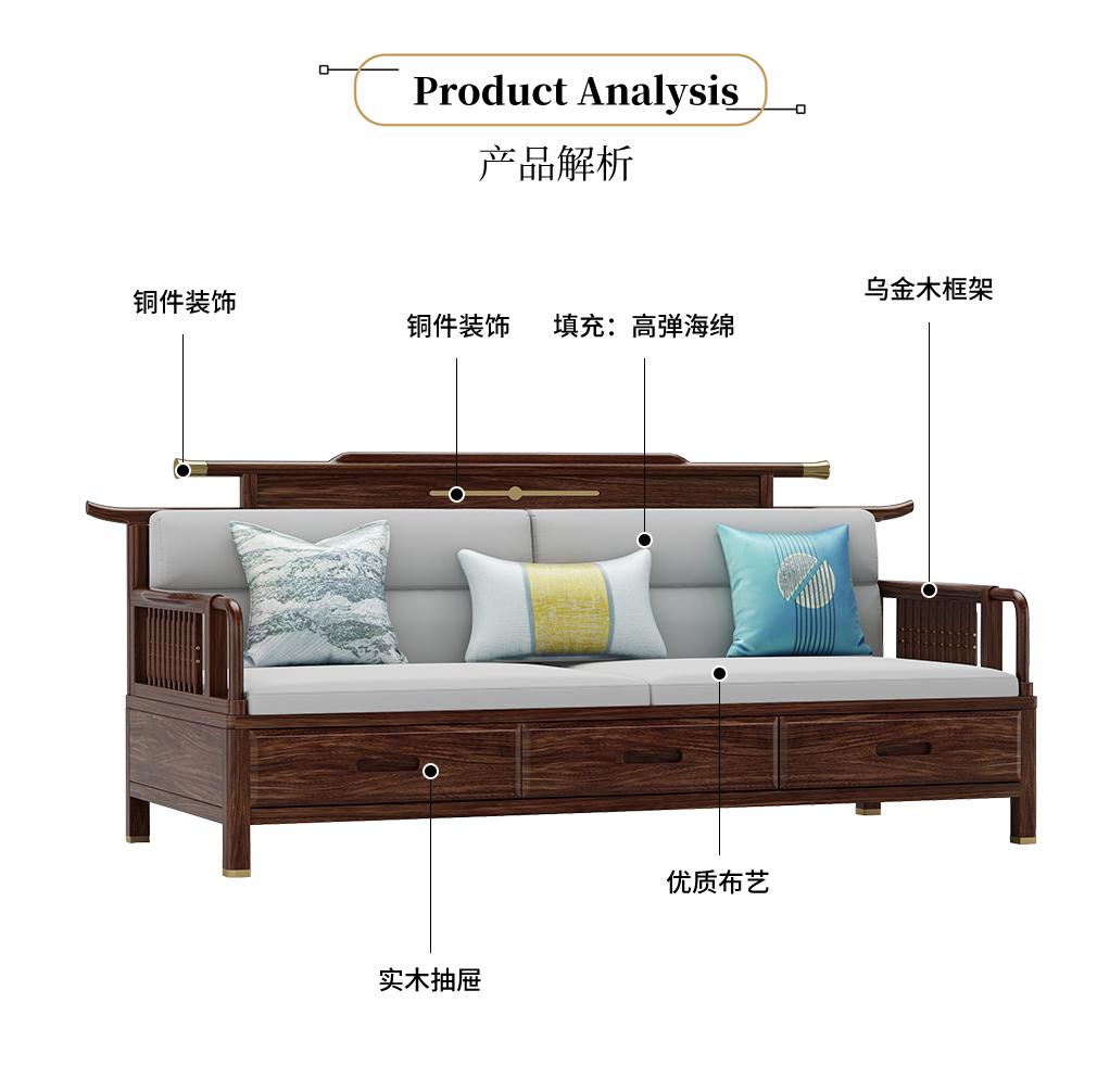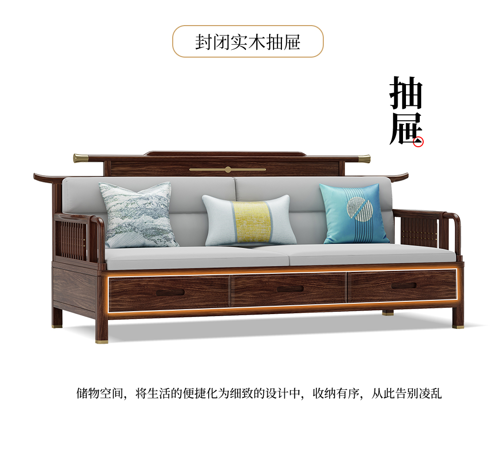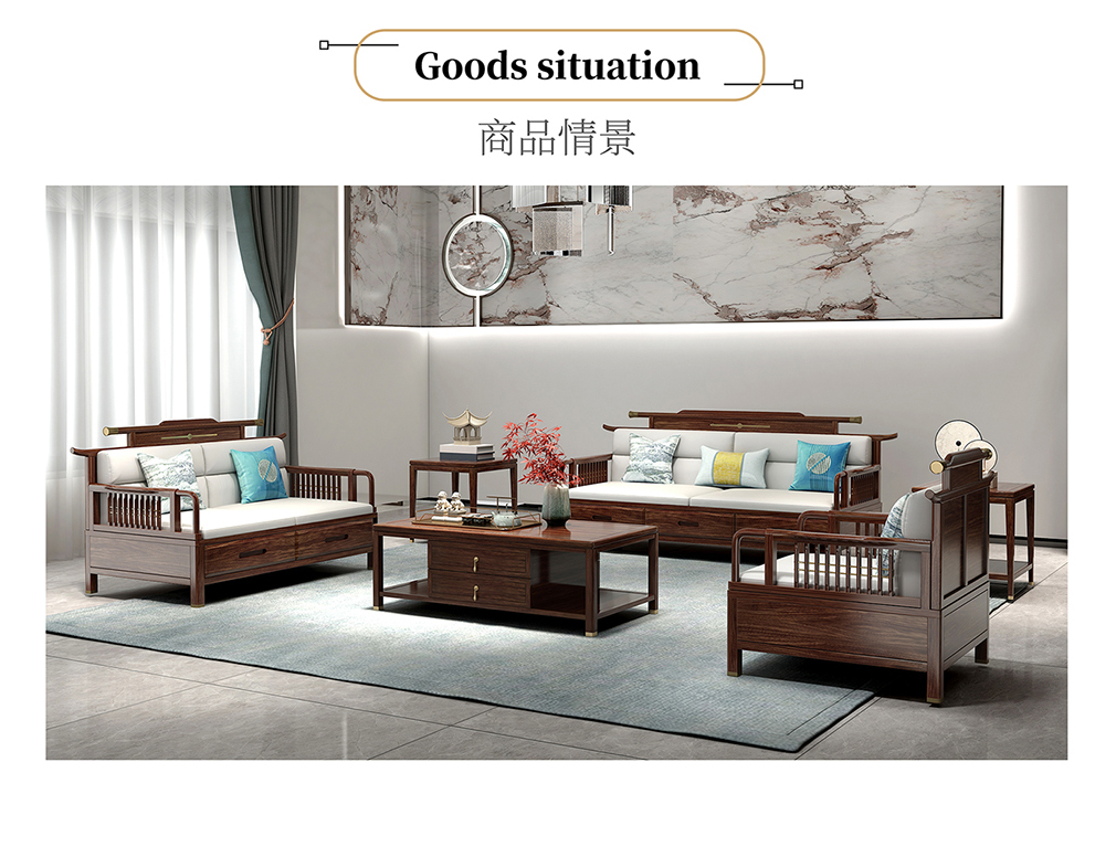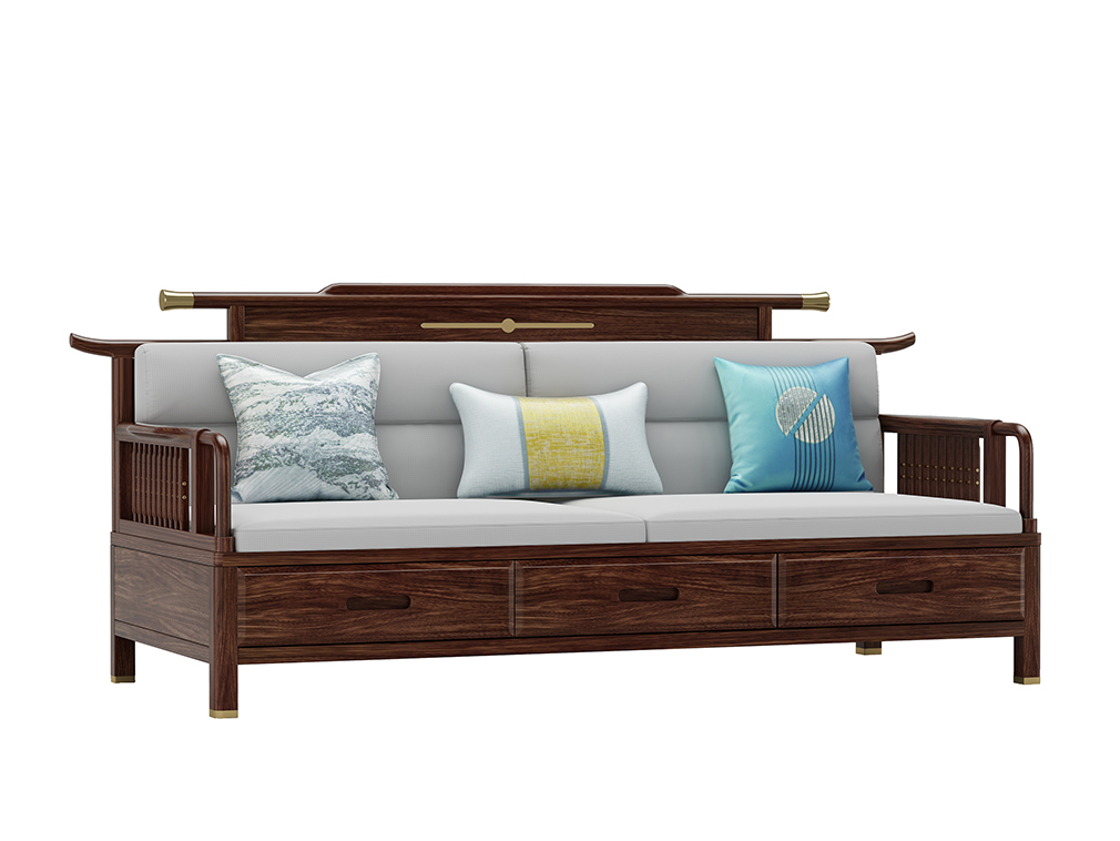 GY新中式GYSF-B2512J实木三人位双扶手沙发