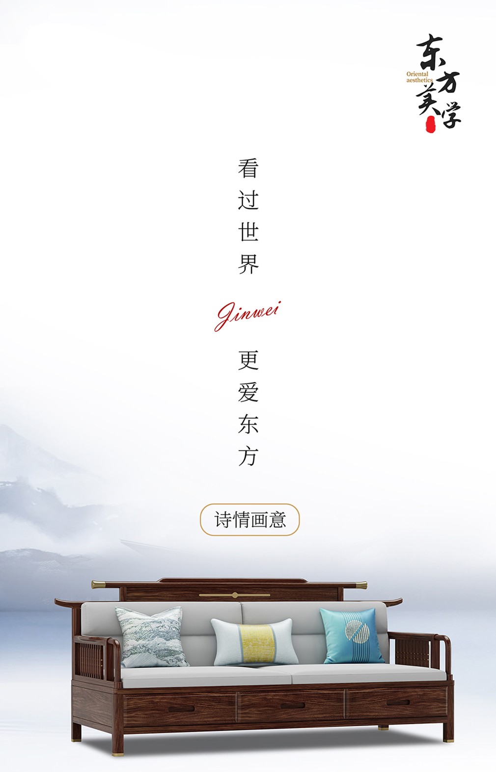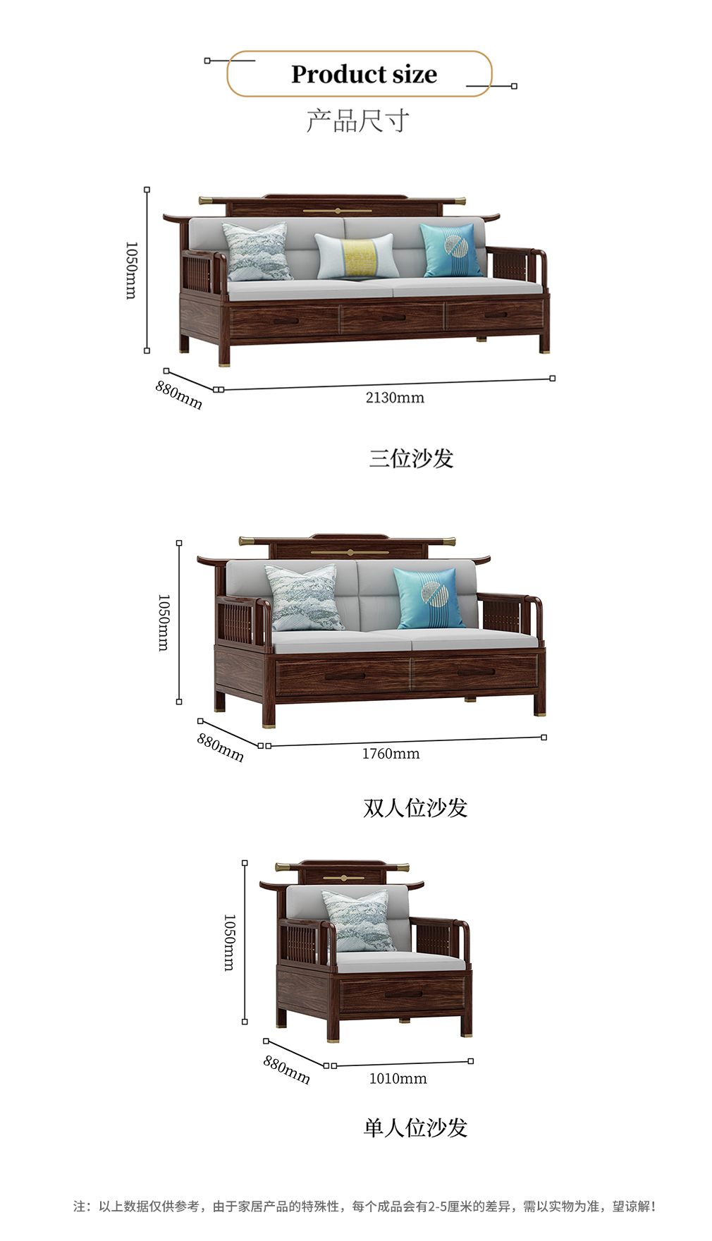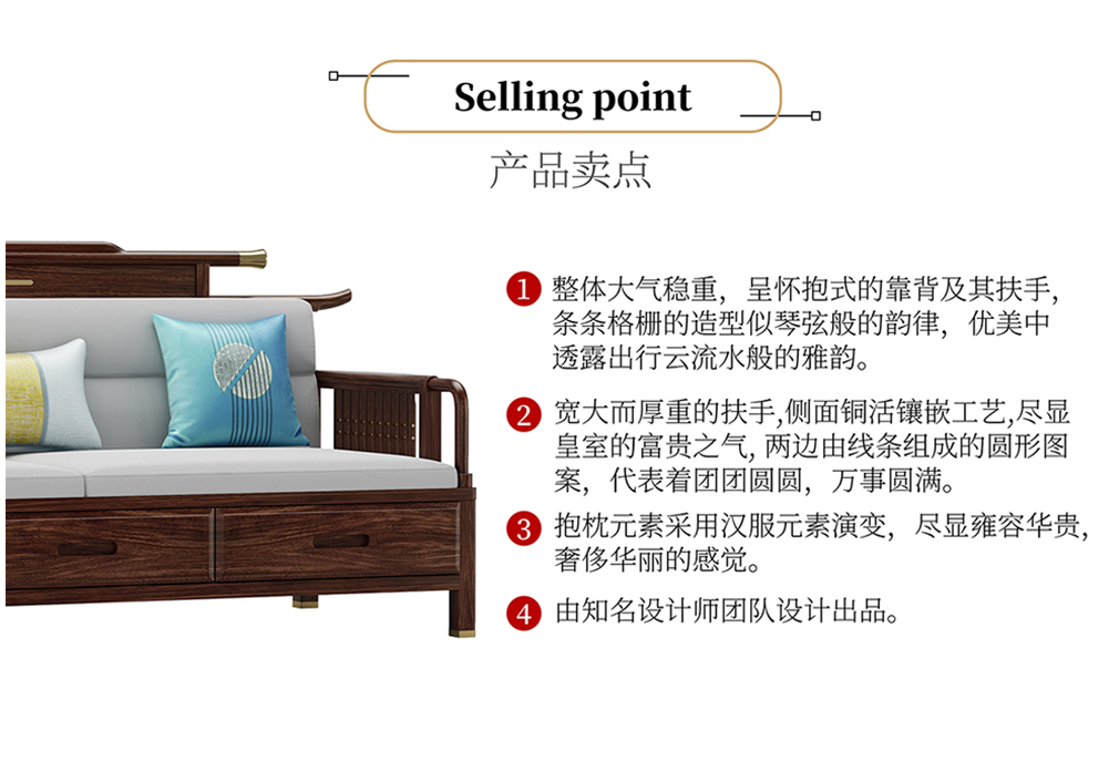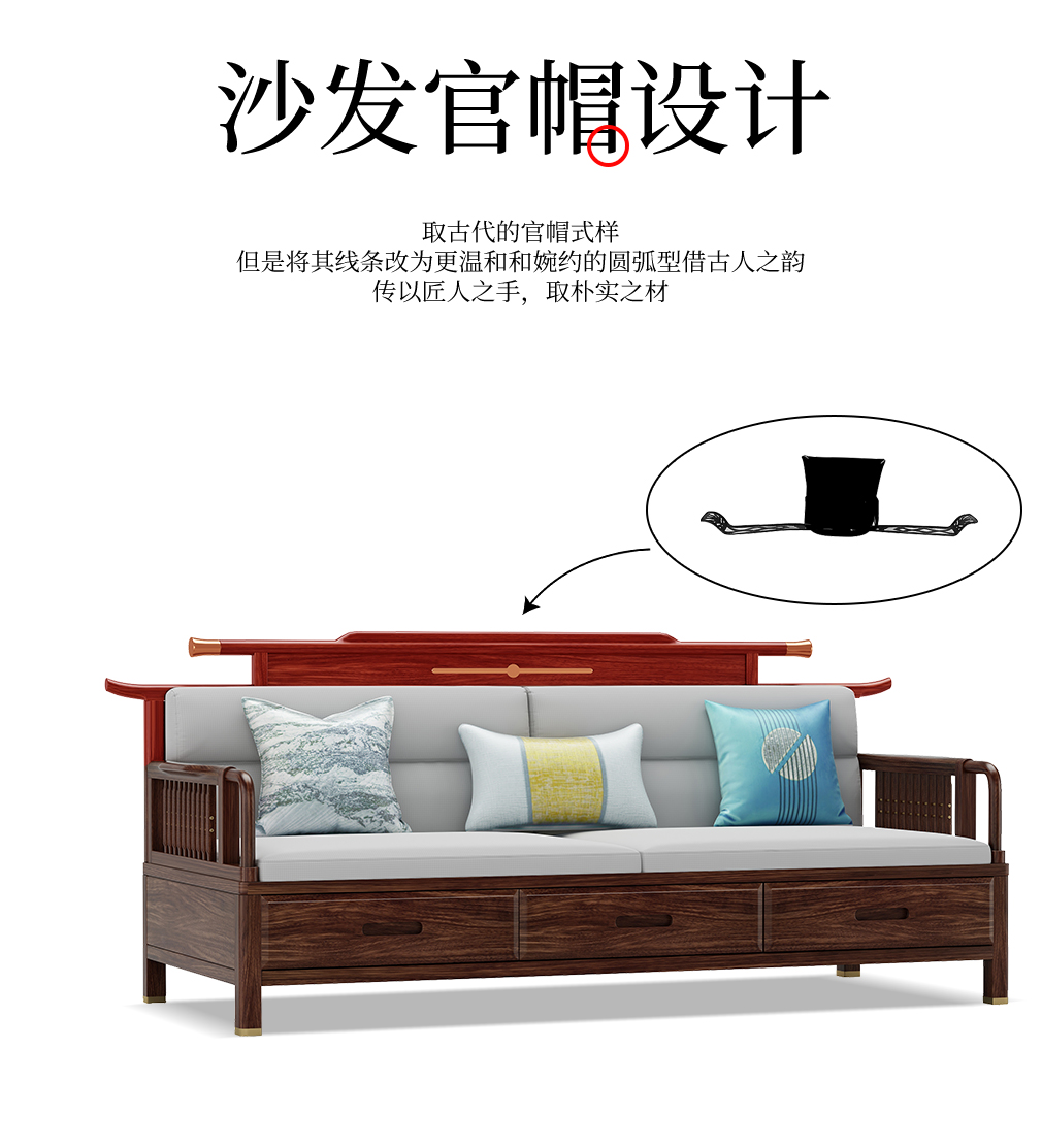 GY新中式GYSF-B2512J实木三人位双扶手沙发