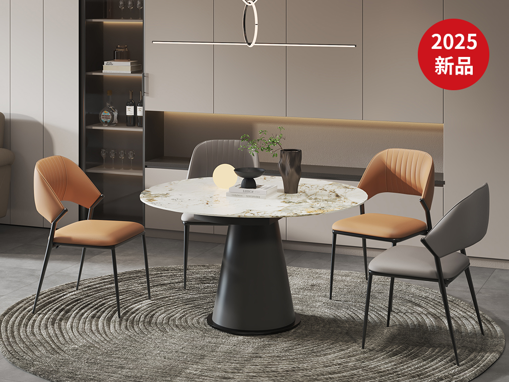 GY现代简约GYCTY-2534圆形拉伸折叠餐桌椅