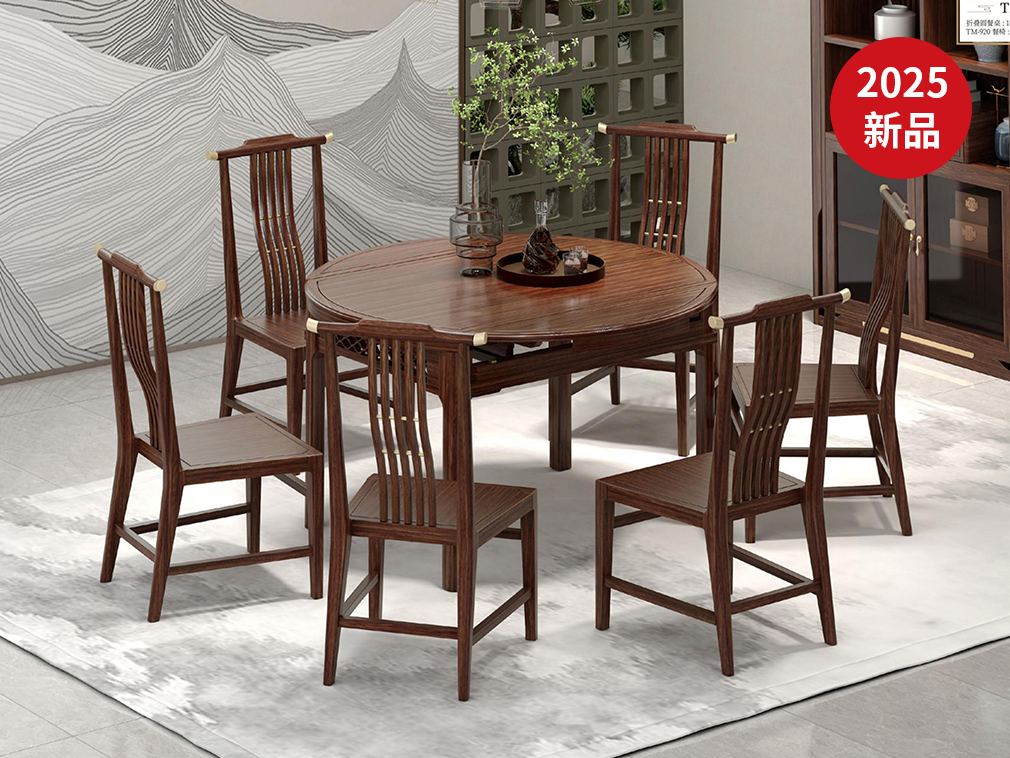 GY新中式GYYZY-2511实木折叠圆餐桌椅