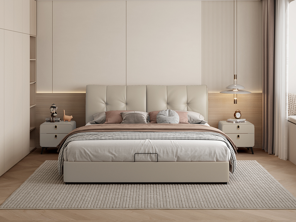 07SNM华夫格CH-P2472F奶油风现代简约真皮软床