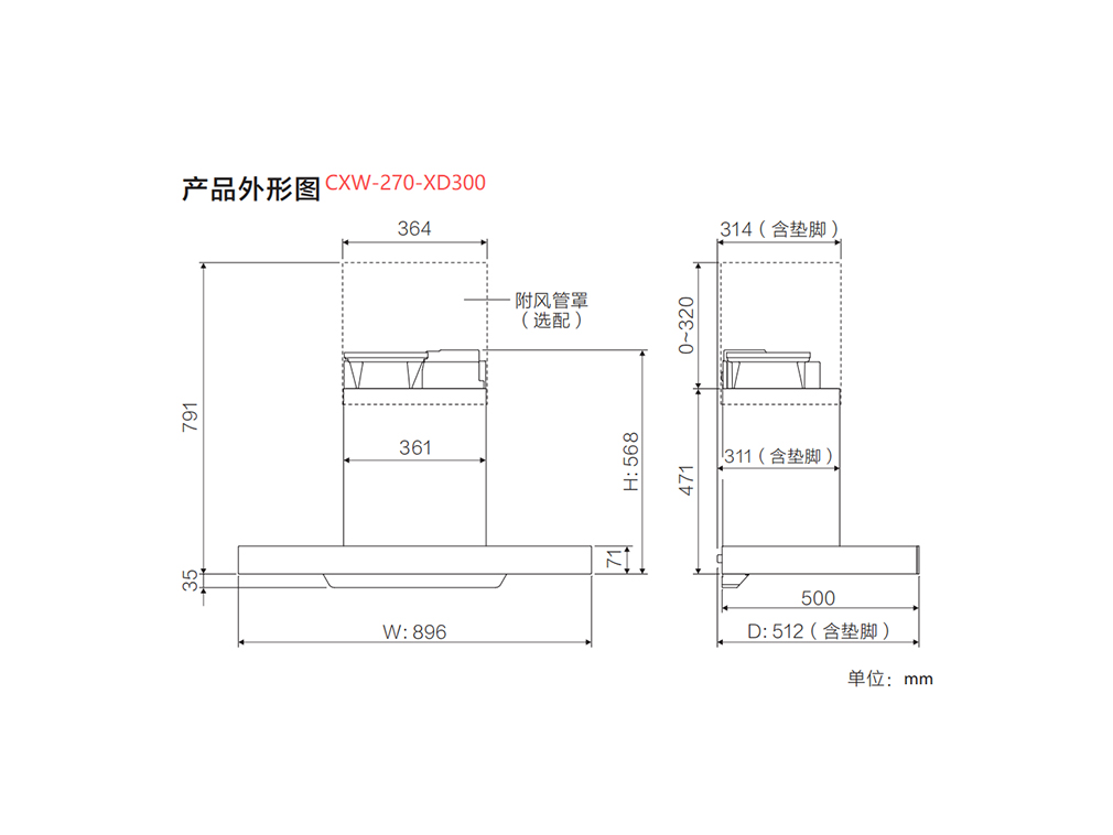 华帝T型顶吸烟机 CXW-270-XD300(风量21m³/min)