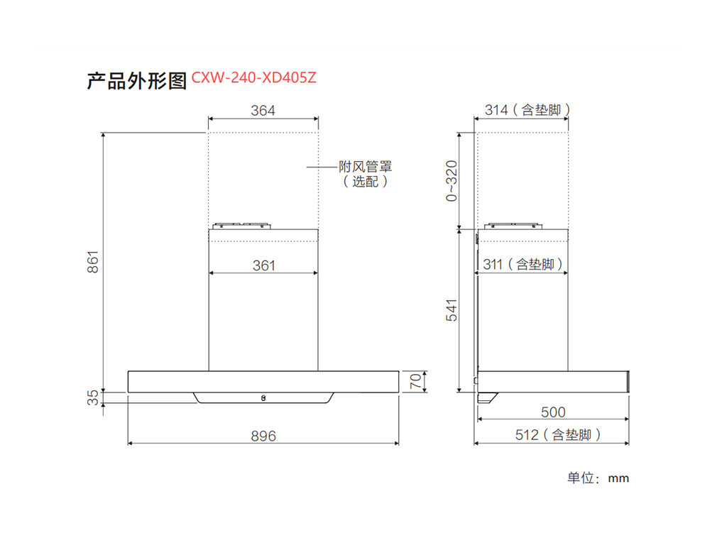 华帝T型顶吸烟机 CXW-240-XD405Z(风量23m³/min)