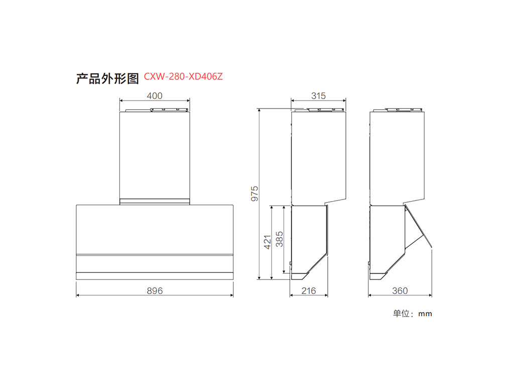 华帝侧吸烟机 CXW-280-XD406Z(风量25m³/...