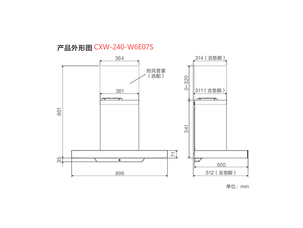 华帝T型顶吸烟机 CXW-240-W6E07S(风量23m³/min)