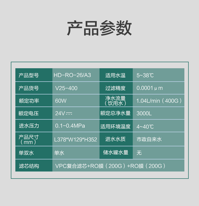 华帝厨下反渗透RO净水机V25-400
