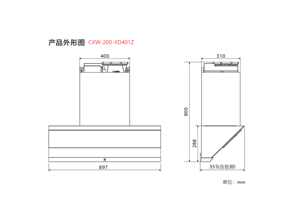 华帝侧吸烟机 CXW-200-XD401Z(风量25m³/...