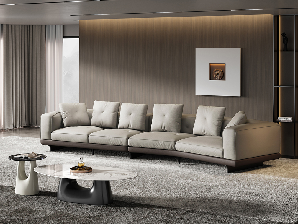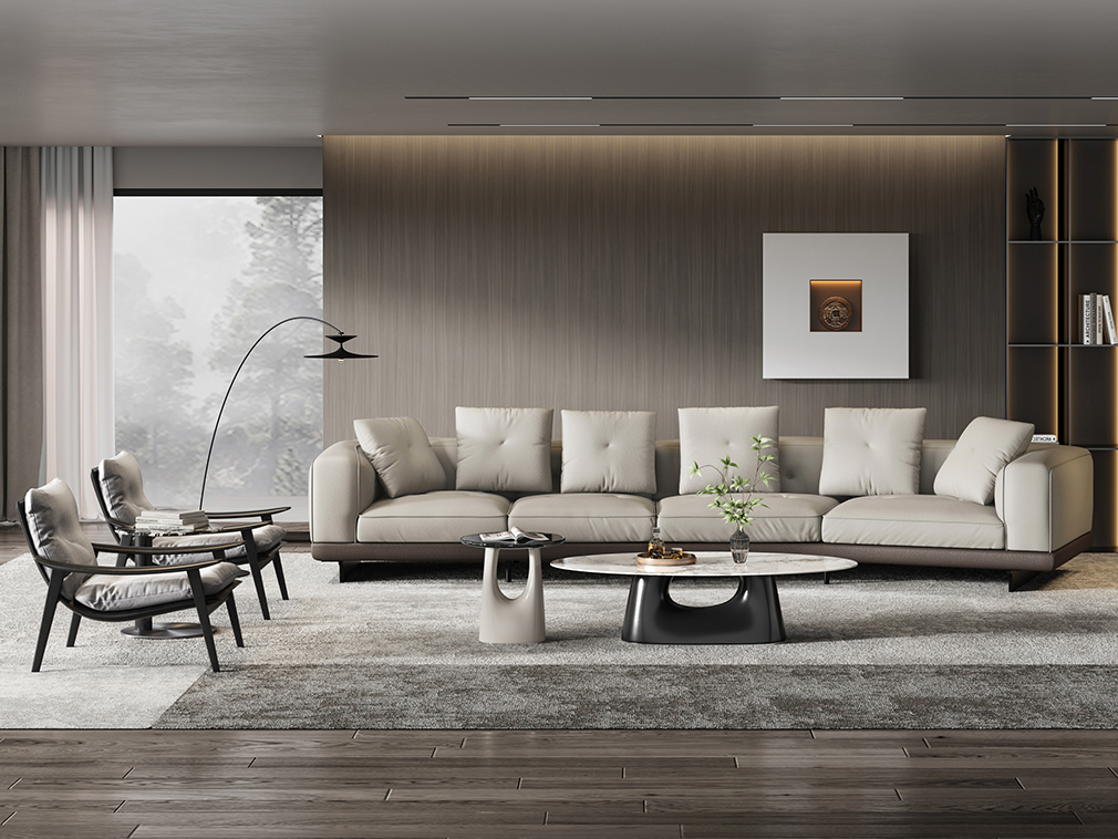 · 迪兰SF-P2564F意式极简真皮沙发 三人位左扶手+异型贵妃位右扶手