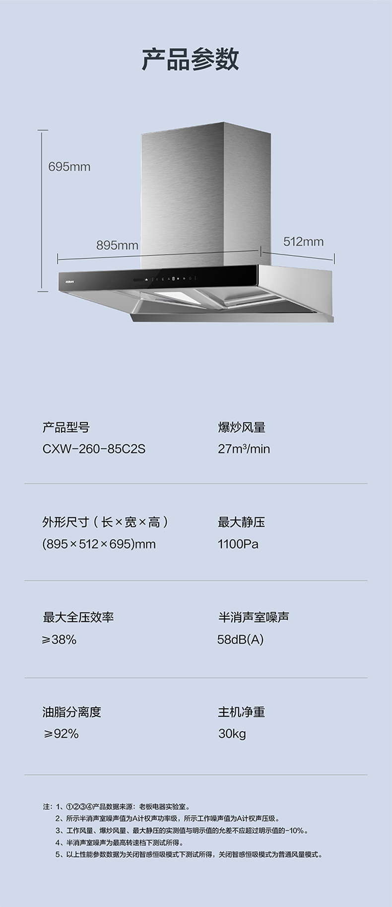 卡萨帝侧吸烟机 CXW-258-CS2UD(风量26m³/min)