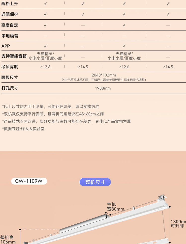 好太太超薄全面屏晾衣机 GW-1076W
