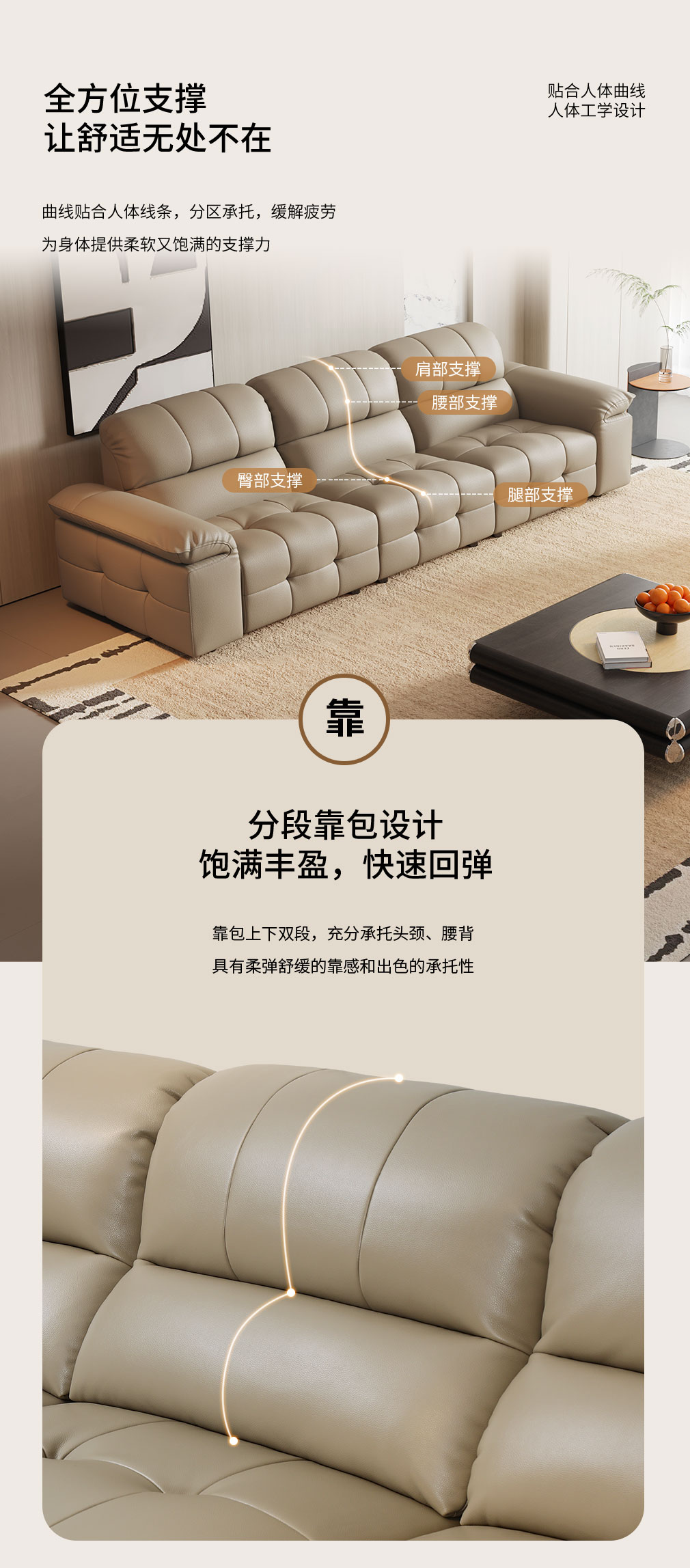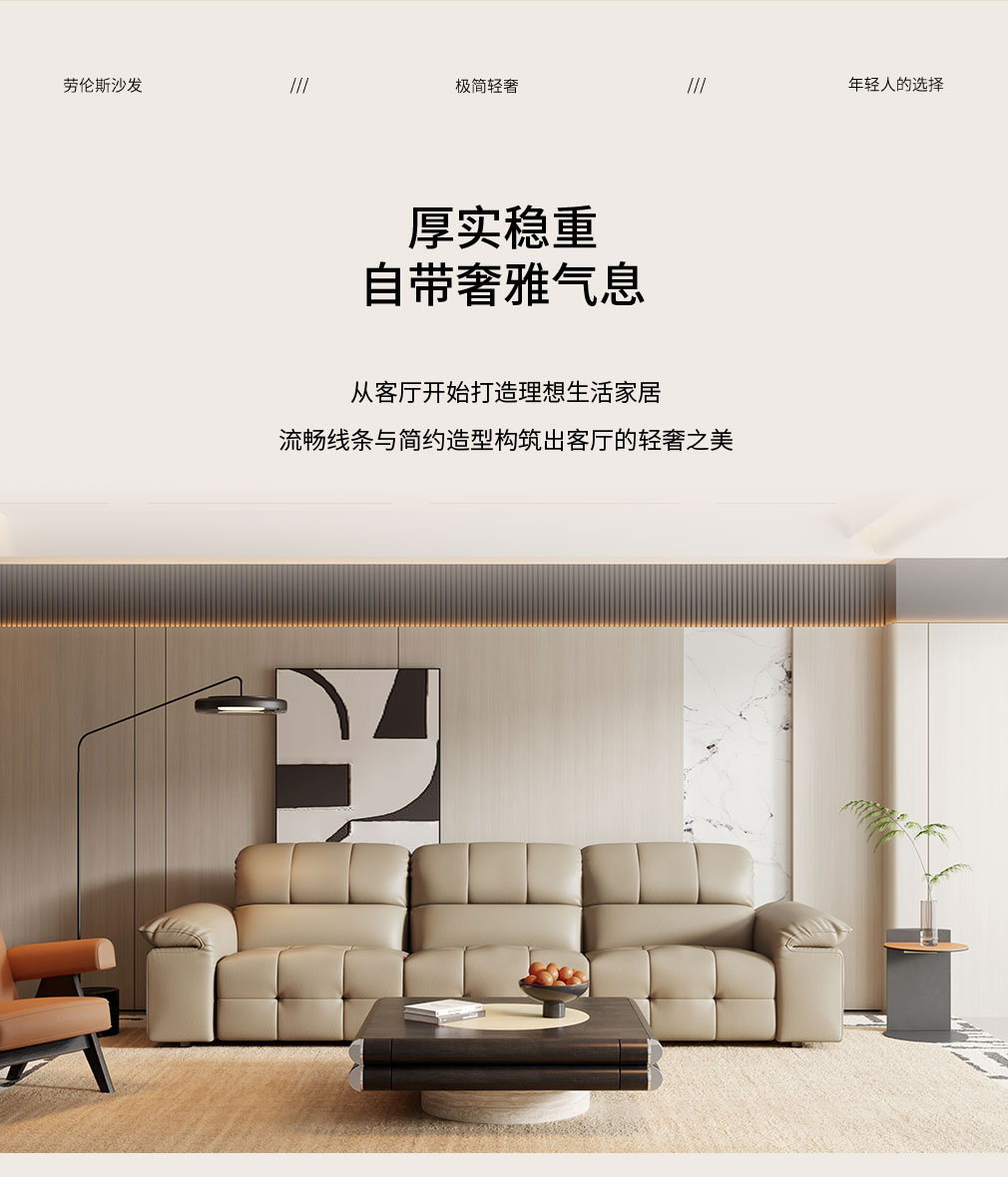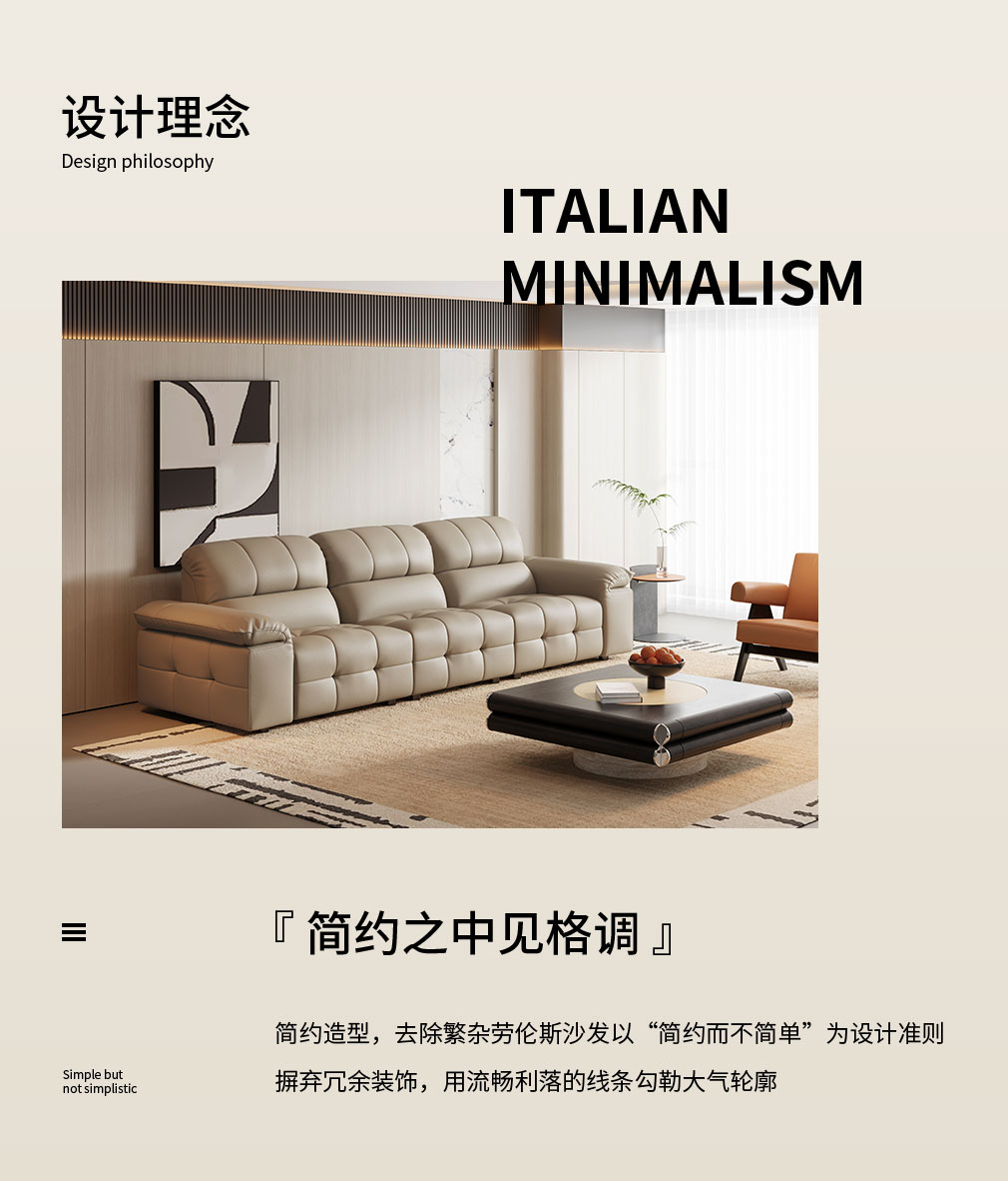 隐序 SF-P2615F 现代极简真皮沙发