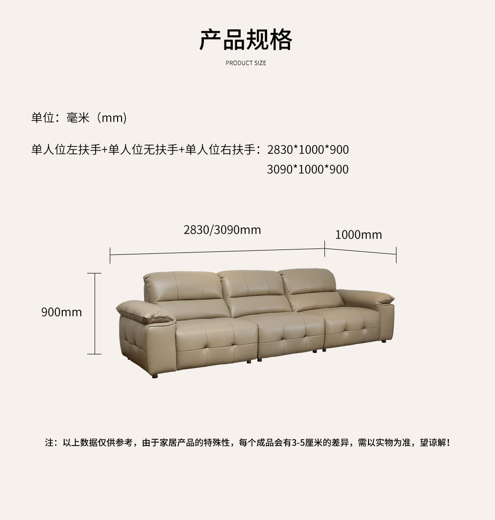 单人位左扶手+单人位无扶手+单人位右扶手:3090*1000*900mm 单人位左扶手+单人位无扶手+单人位右扶手:2830*1000*900mm