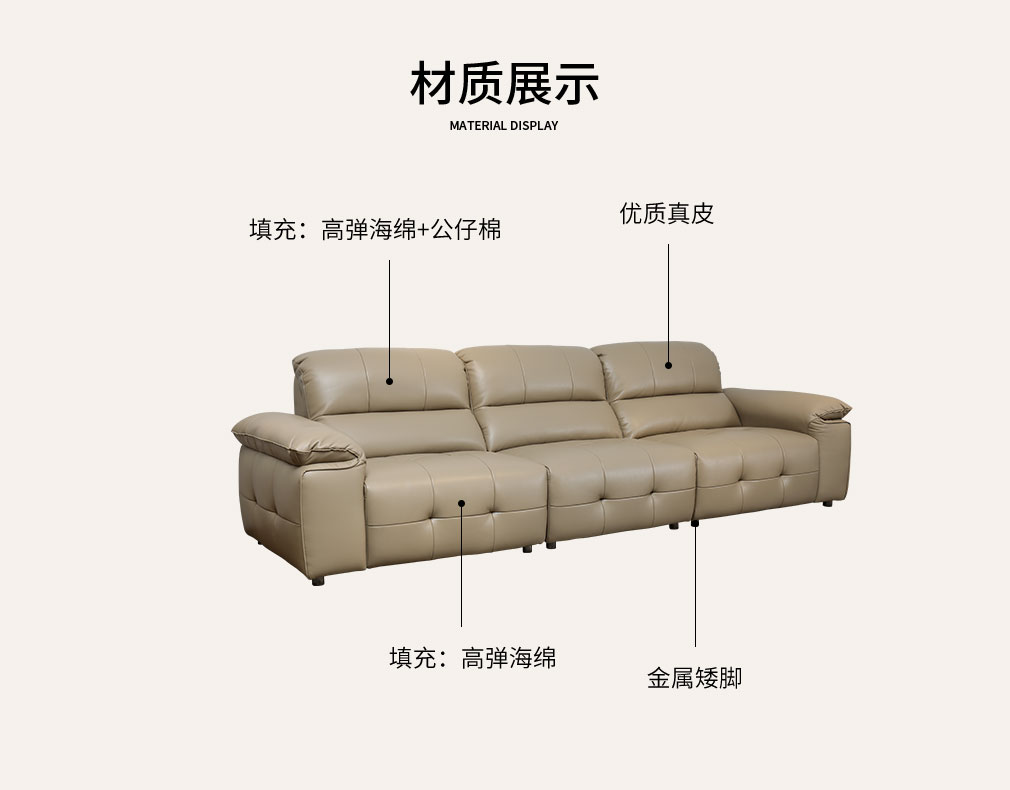 · 青羽 SF-P2617F 现代极简真皮沙发 单人位左扶手+单人位无扶手+单人位右扶手