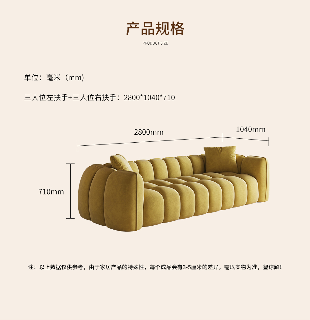三人位左扶手+三人位右扶手:2800*1040*710mm