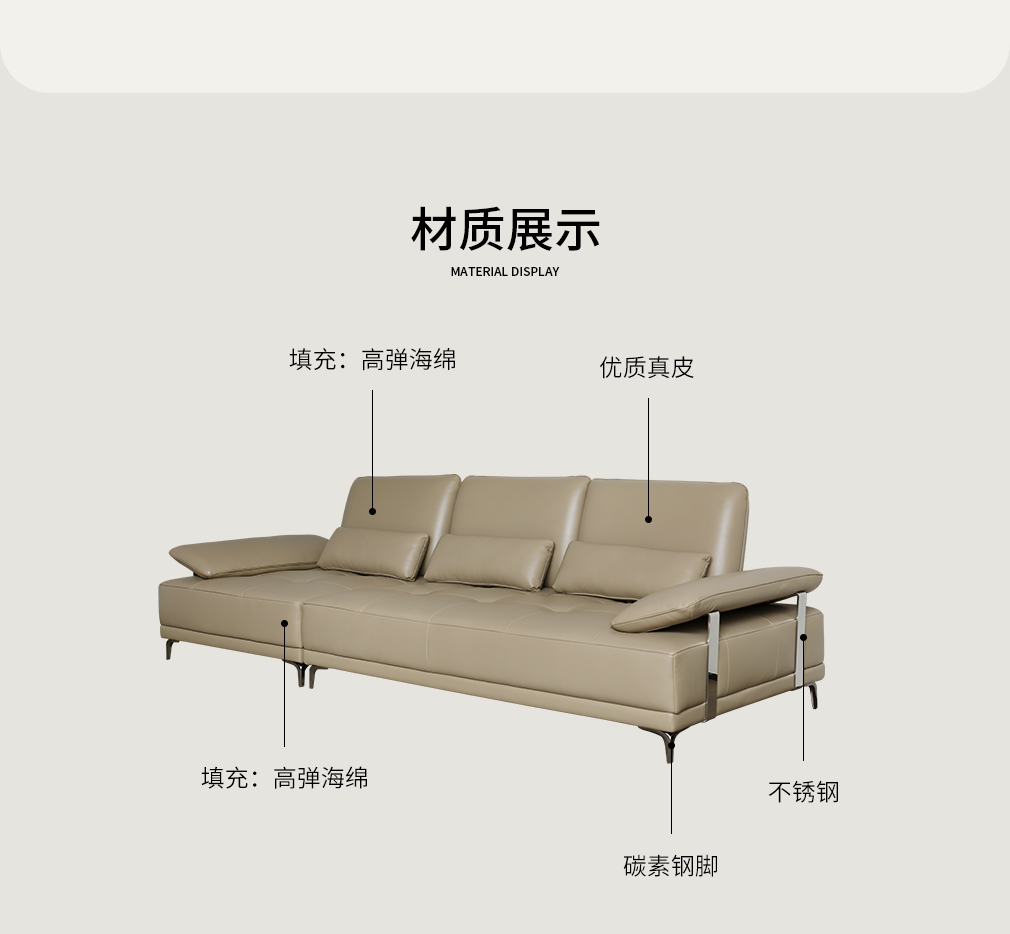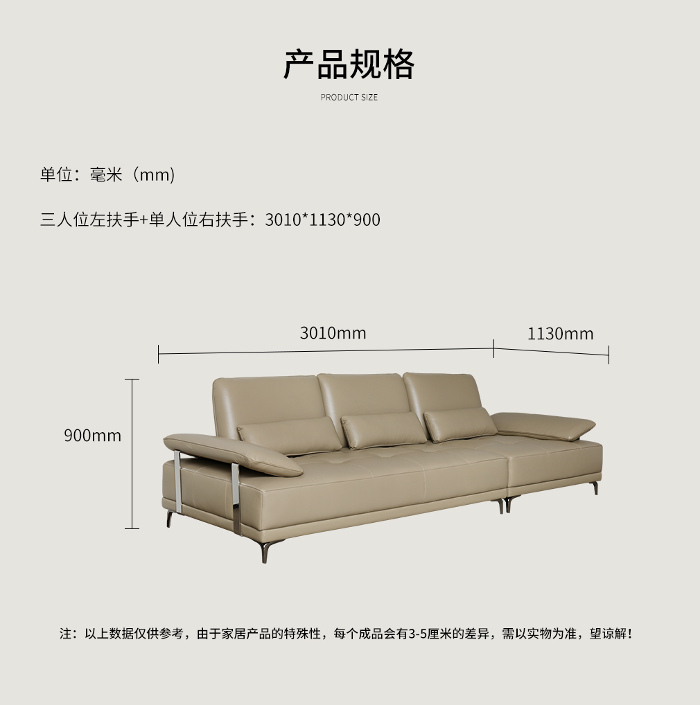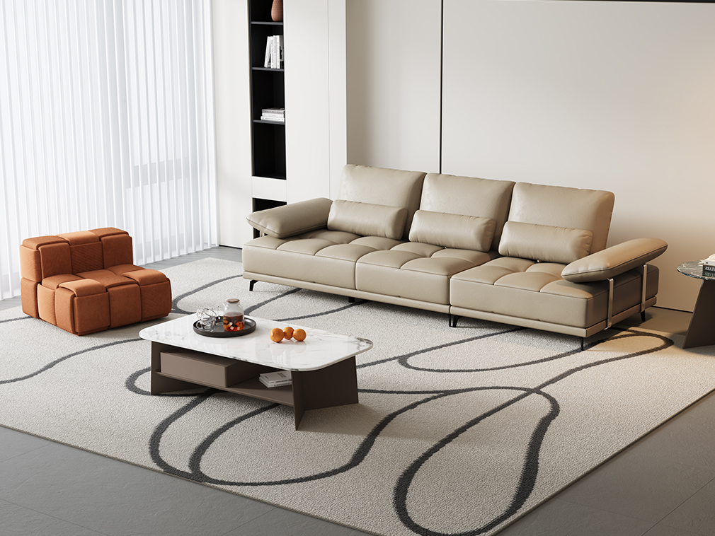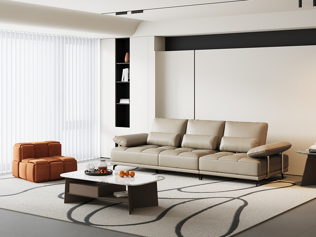 隐序SF-P2615F现代极简真皮沙发 三人位左扶手+单人位右扶手